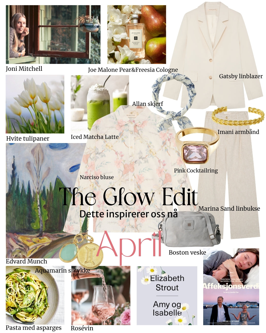 Vi nyter de enkle øyeblikkene – pasta med asparges og sitron, et glass rosé i kveldssolen, og en frisk iced matcha latte. Kanskje med Amy og Isabelle av Elizabeth Strout i fanget, eller et stille møte med et maleri av Edvard Munch.