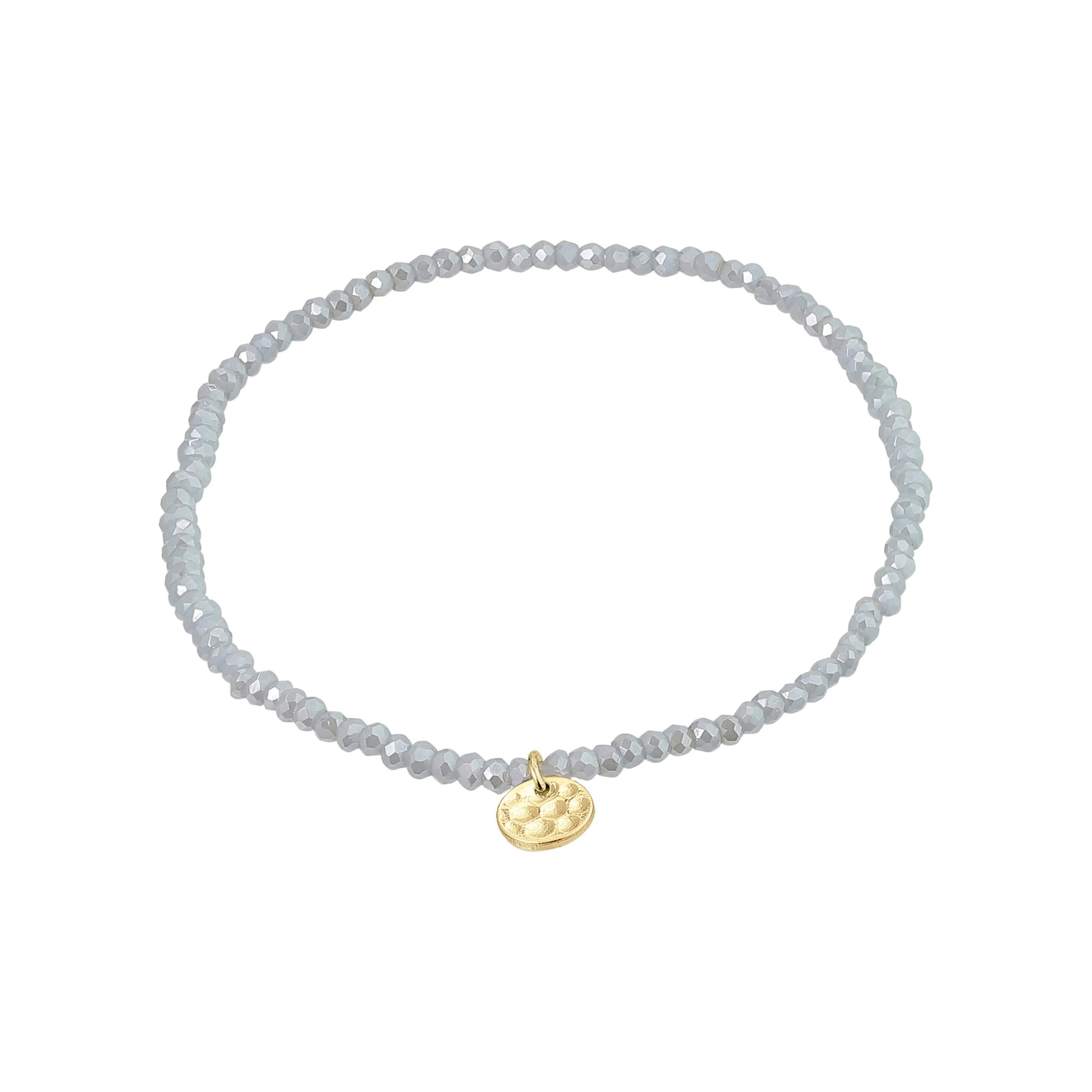 Vakkert og glitrende perlearmbånd av små fasetterte glassperler i en flott lyseblå nyanse. Med diskret gullbelagt Pilgrim-logo. Perfekt til å kombinere med andre armbånd av samme type i andre nyanser for et unikt og personlig utseende. Armbåndet et samlet med en holdbar lycra-strikk og passer til de fleste håndledd. Det måler 17 cm.