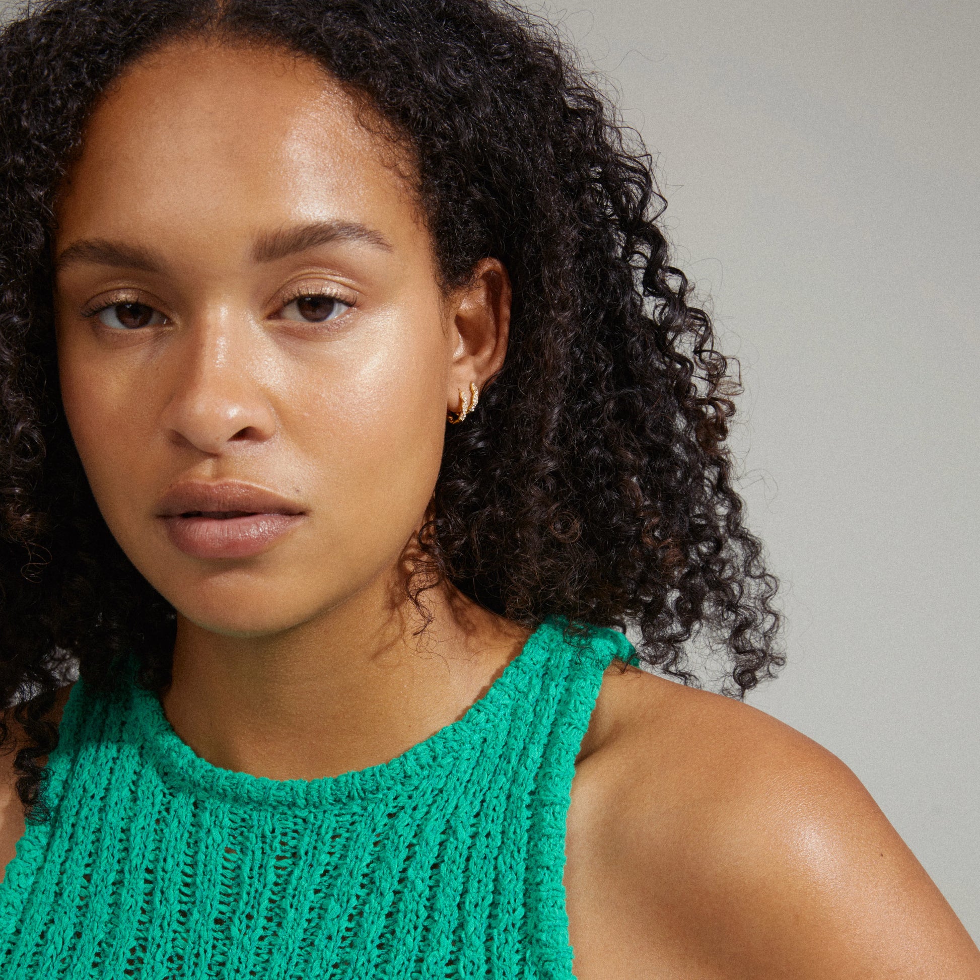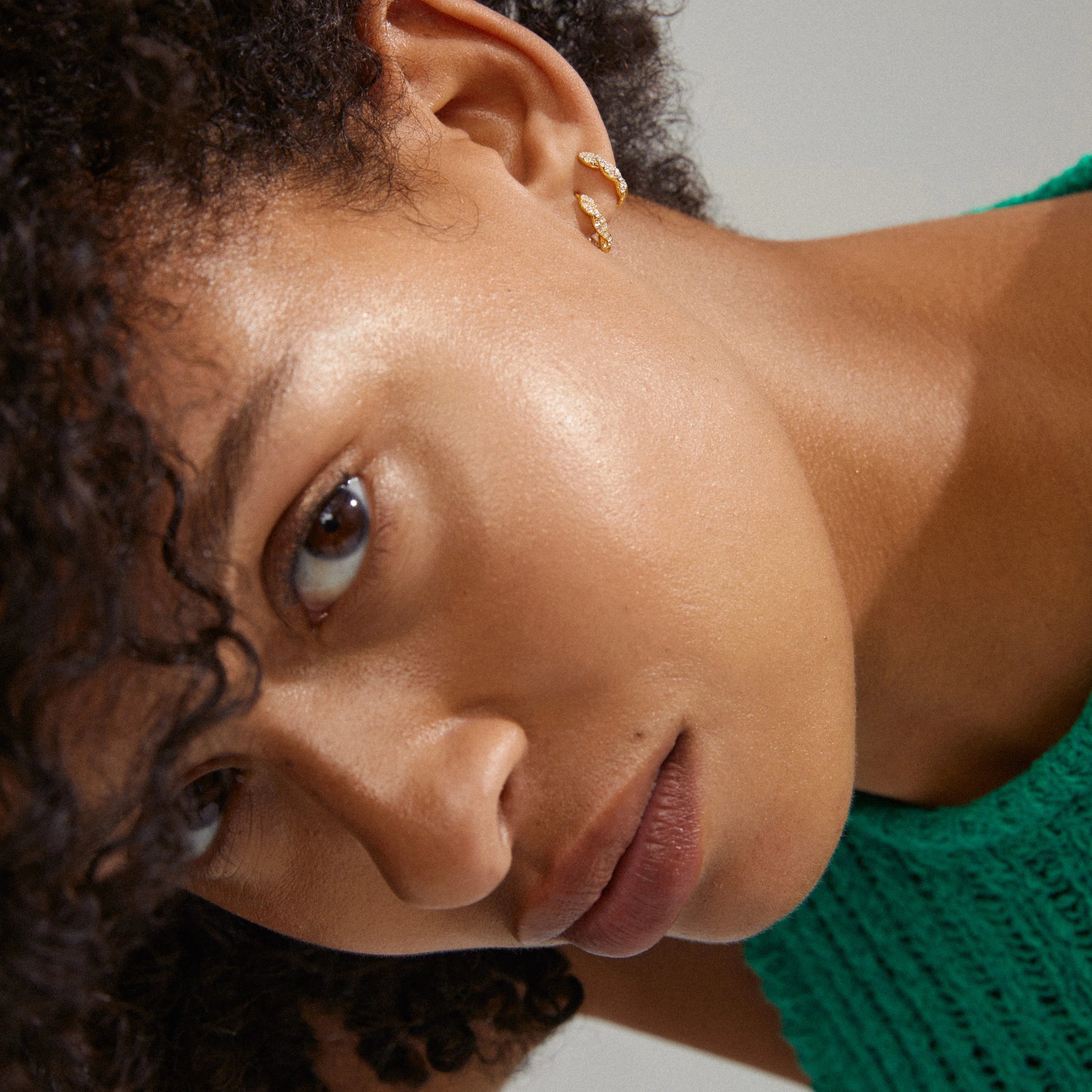 Twisted shine! De små gullbelagte EZO hoopsene mikser lekre, tvinnede detaljer med glitrende Preciosa-krystaller for en shimmery effekt som fanger lyset uansett vinkel. Den flettede silhuetten gir et elegant, men samtidig edgy uttrykk som løfter både hverdagsantrekk og party-looks. Et par tidløse favoritter du garantert vil bruke igjen og igjen i smykkegarderoben din.