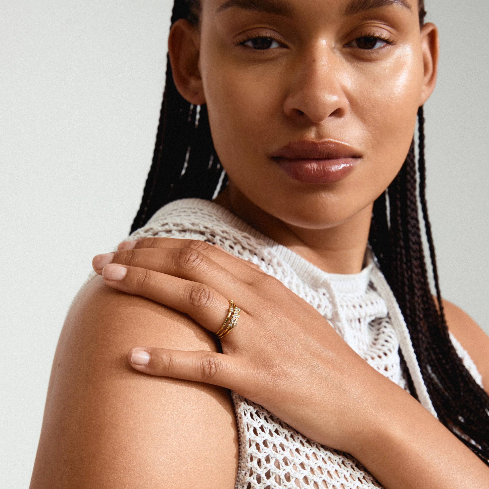 Shine away med de gullbelagte ringene fra Pilgrims Classic-kolleksjon. Her får du totalt 3 ringer i ett sett. Alle tre ringene kommer i et klassisk tynt design med en shiny overflate, dekorert med glitrende Preciosa-krystaller. Gir en trendy stacked look, som du kan toppe med glossy neglelakk og style med et par loose fit jeans og flate sandaler for en true summer feeling. Ringene kan justeres i størrelse for optimal passform og er laget av 97% resirkulert materiale med omtanke for miljøet.