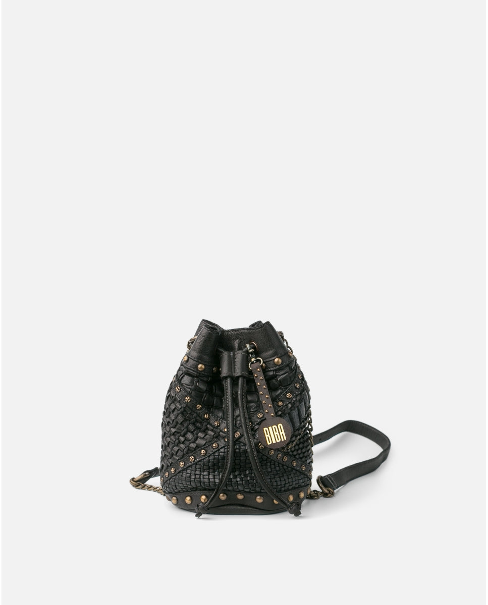 Liten cross body-veske i vasket og håndflettet kuskinn
